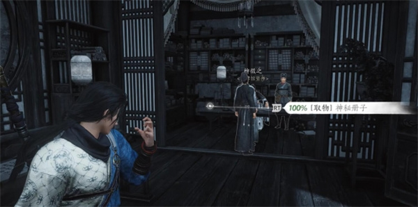 5、用取物把桌子上的【神秘册子】拿出来回去找【闻古今】;