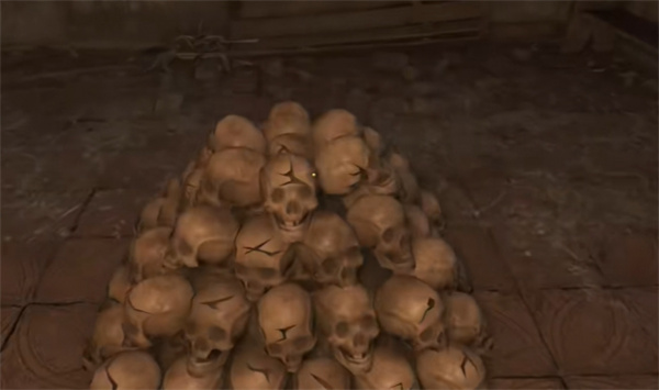 4、随后把收集到的大腿骨、颅骨堆起来。