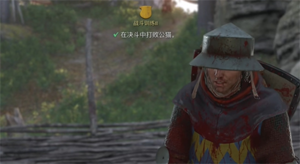 4、这样面对二阶段公猫决斗任务就相对容易多了,不过还是推荐玩家嗑药,挑战之前存档,多注意格挡。