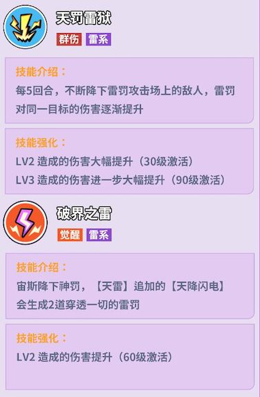 2、宙斯天罚雷狱技能固定回合降下雷罚攻击敌人,对同一目标伤害逐步叠加,等级提升后能大幅增强单次攻击伤害。