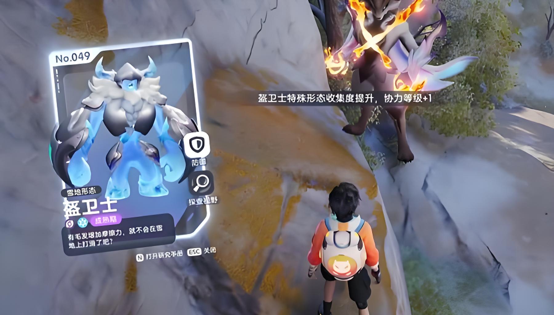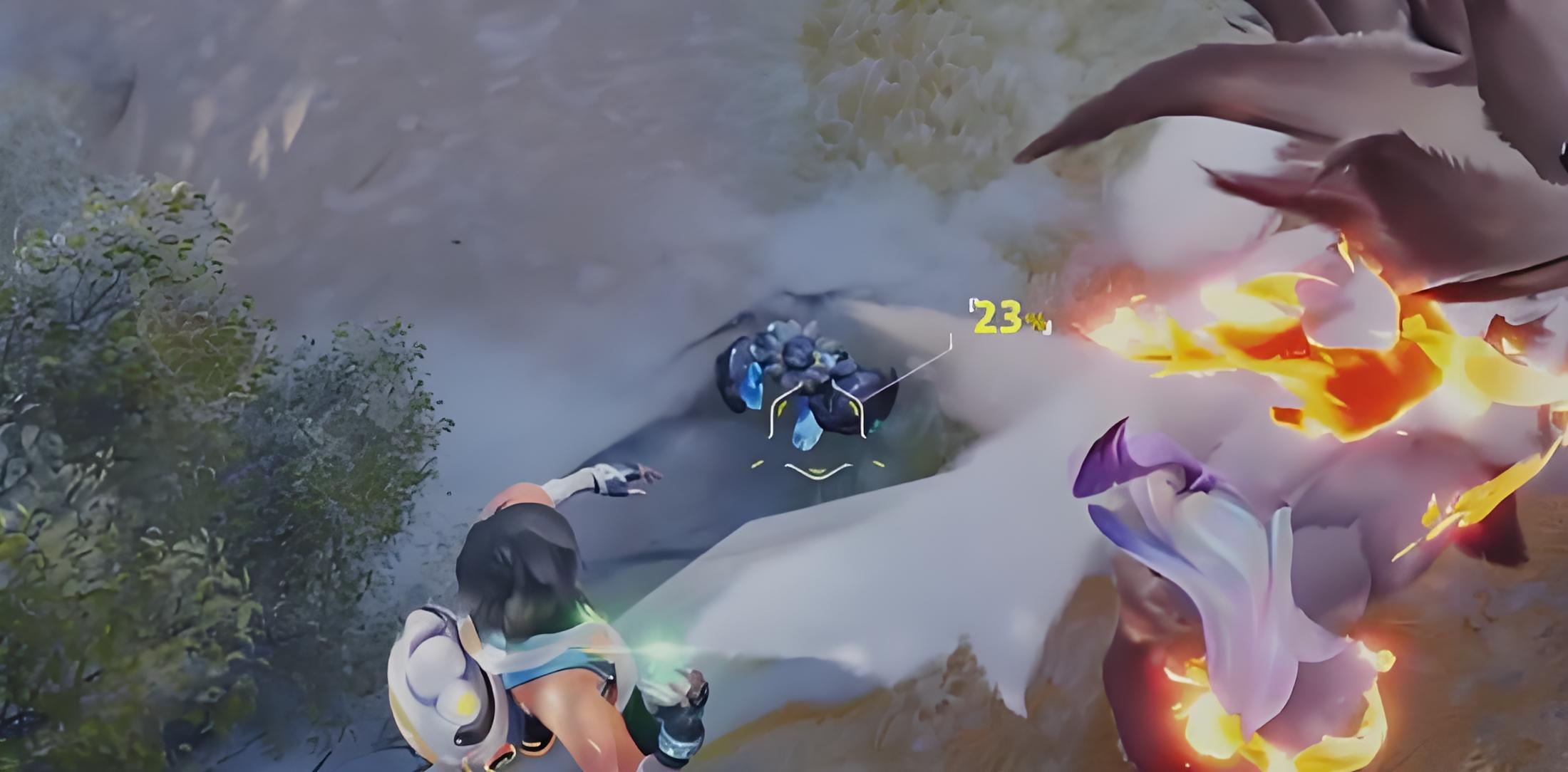 2、触发雪地盔勇士现身需使用火属性精灵释放火焰类技能,比如火球术或喷射类技能融化雪球,只有这样才能让隐藏的它出现。