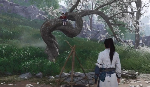 1、时一墨首次出现在不羡仙的村子出口处,在一颗梨花树下有一个火堆,玩家需要先进行灭火,随后时一墨才会出现并与玩家对话。