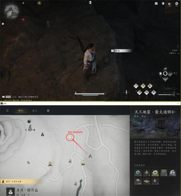 3、接着我们前往天工地窟·箭火通明,在里面中拾取残破的秘籍;