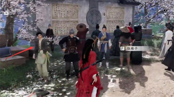 1、来到【御林苑】往左边走靠近放榜台对话【伍娘子】;
