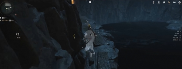 4、看到悬崖瀑布,跳下去。