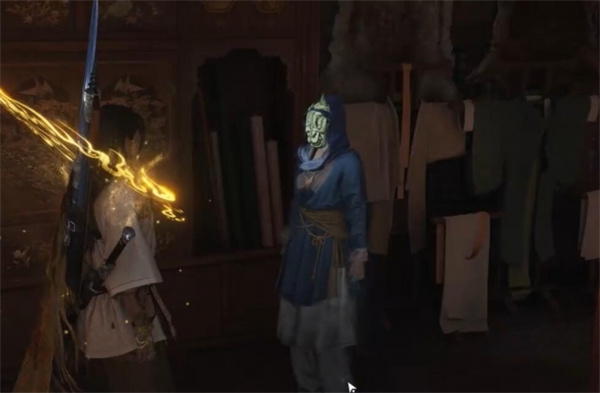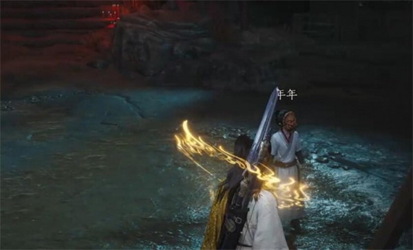 3、出门右拐直走,找NPC【万俟安山】对话拿到剑穗;
