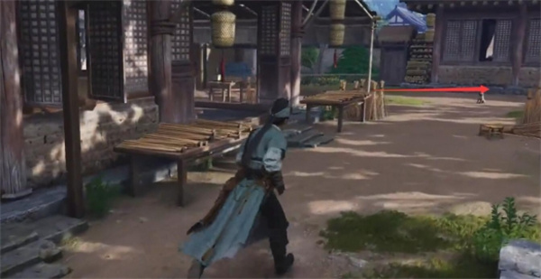 4、黄色的伞后面找到NPC【月牙】往前面出去来到房子背后;