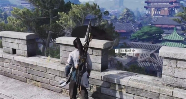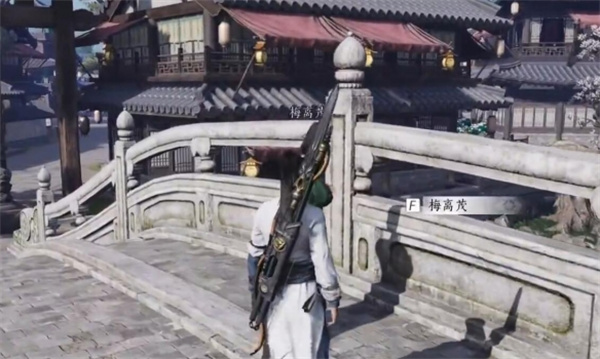 3、上城墙靠近交互拿到伞后回到桥上找【梅离茂】;