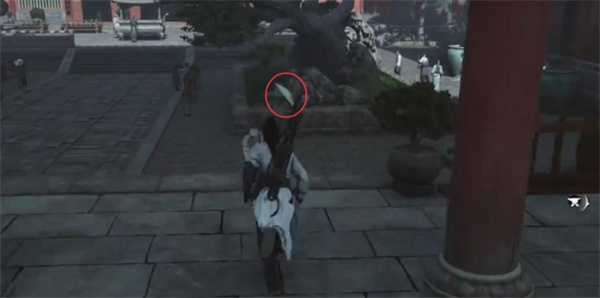 2、对话完后出去进入【大相国寺】,在右边树下找到【坏了的伞】;
