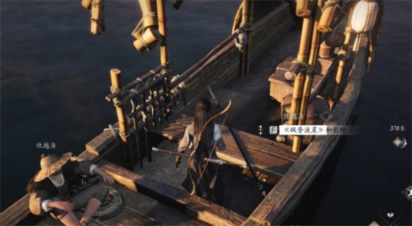 完成小游戏后正好会到一条小船上,我们可以在船上拾取《飒沓流星》和一柄长枪。