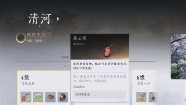 这个暮云配的获取方法比较简单,只需要清河区域的探索达到4级后就能领取。