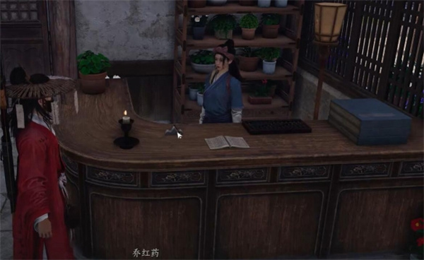 2、往前走进入左边第一个店铺对话【乔红药】触发任务;