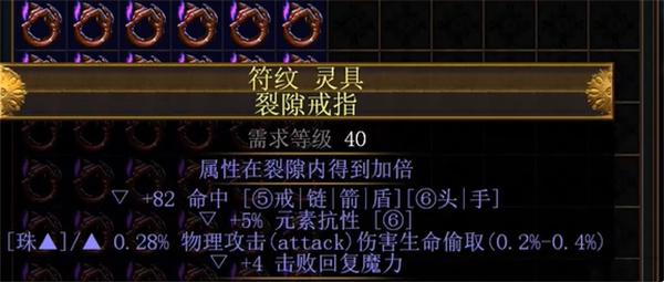 2、然后对150以上的戒指使用增幅石增幅一条属性,最好能出魔力恢复率、智慧,当然如果出了抗性或者施法速度也是可以的。