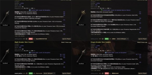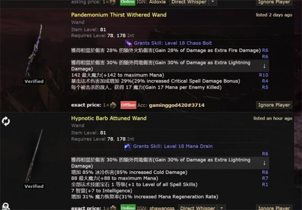 额外伤害:增加特定类型的伤害(如闪电、冰冷、火焰等)的前缀,尤其是高百分比的伤害增幅,通常会显著提高武器的价值。