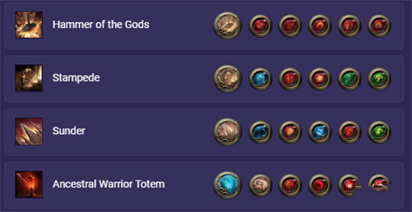 祖先战士图腾用于破坏护甲并提供增益/减益效果,例如对众神之锤造成更多伤害的破裂