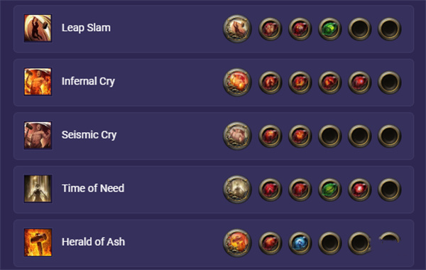 冲撞用以清理小怪,众神之锤击杀高防御怪物,撕裂在破坏护甲的首领/垃圾小怪上补充高伤害技能