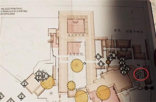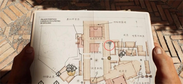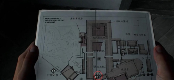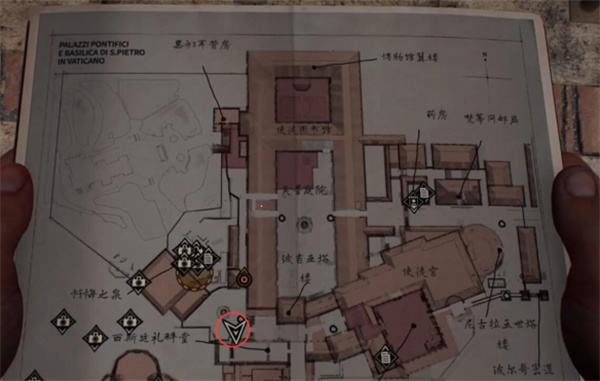 1、从【尼古拉五世塔楼】进入下水道(要钥匙),来到坐着的人旁边,把墙敲碎;