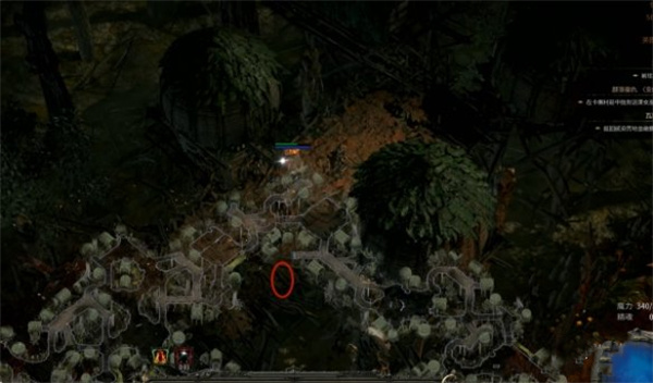 接着我们探索地图,来到下图中红圈标明的位置,就能找到女巫BOSS。