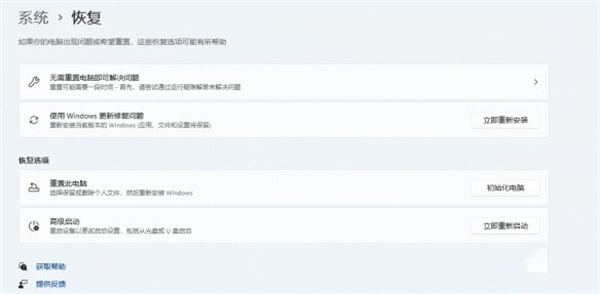玩家点开设置-windows更新-高级选项-恢复即可,更新时间过长就只能选择重置此电脑了。