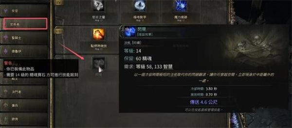 3、换完穿上之后,还需要留60精魄才能用,它以一個冷卻時間极短的法术代替闪避翻滚。