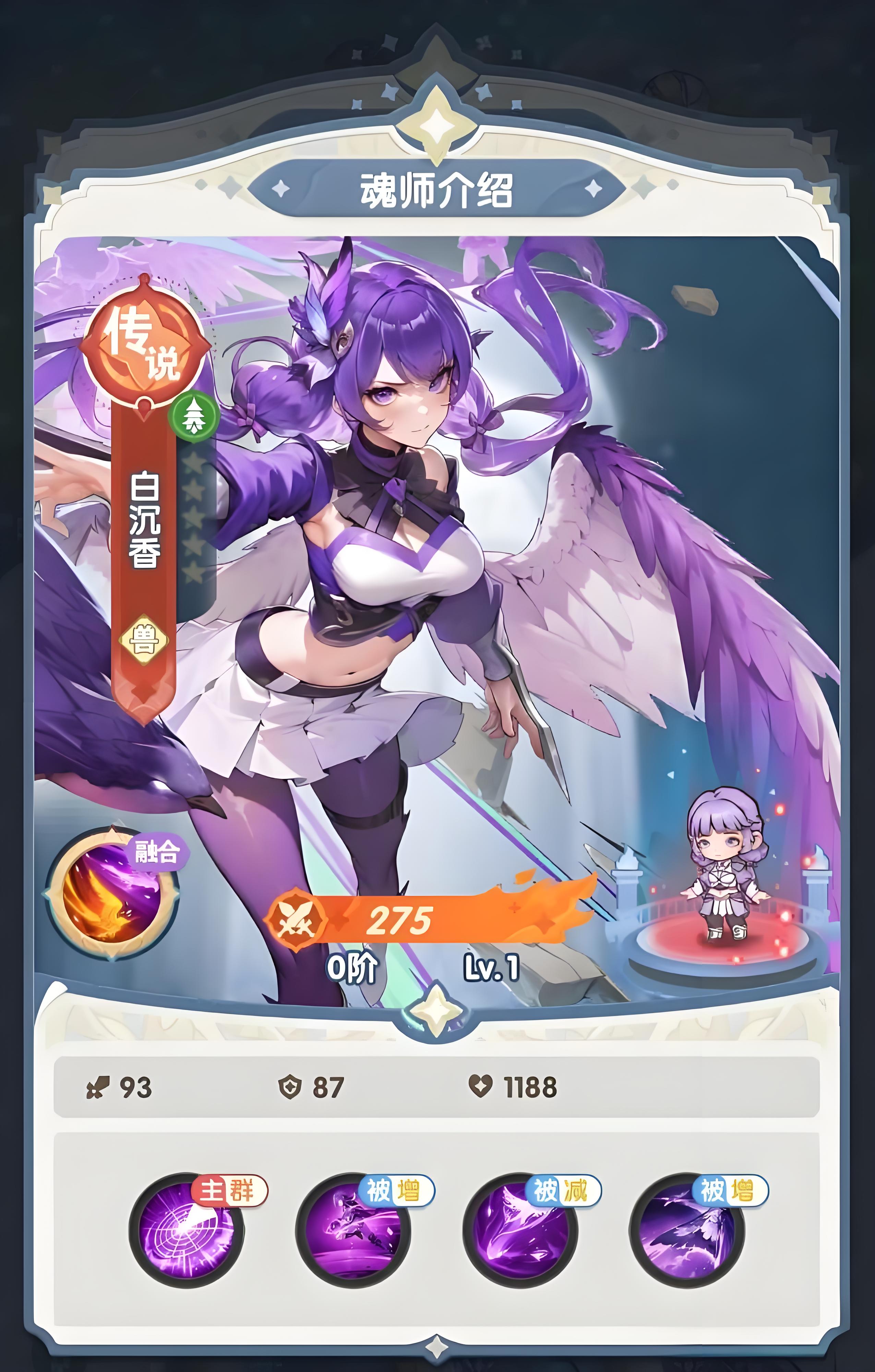 4、白沉香增强队伍先手能力,技能给敌方加迟缓和致盲,战前为三名队友回魂力,还附加伤害加深与暴击效果。