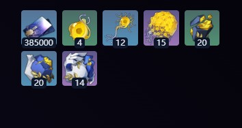 信用点×385000、思量的种×4、末那芽苗×12、阿赖耶华×15、恐惧踏碎血肉×20、勇气撕裂胸膛×20、荣耀洗礼身躯×14
