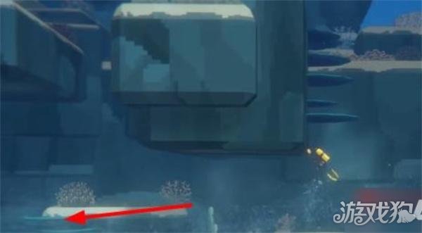 1、完成支线任务“调查可疑珊瑚”,从章鱼洞穴出来后,按照箭头方向移动。