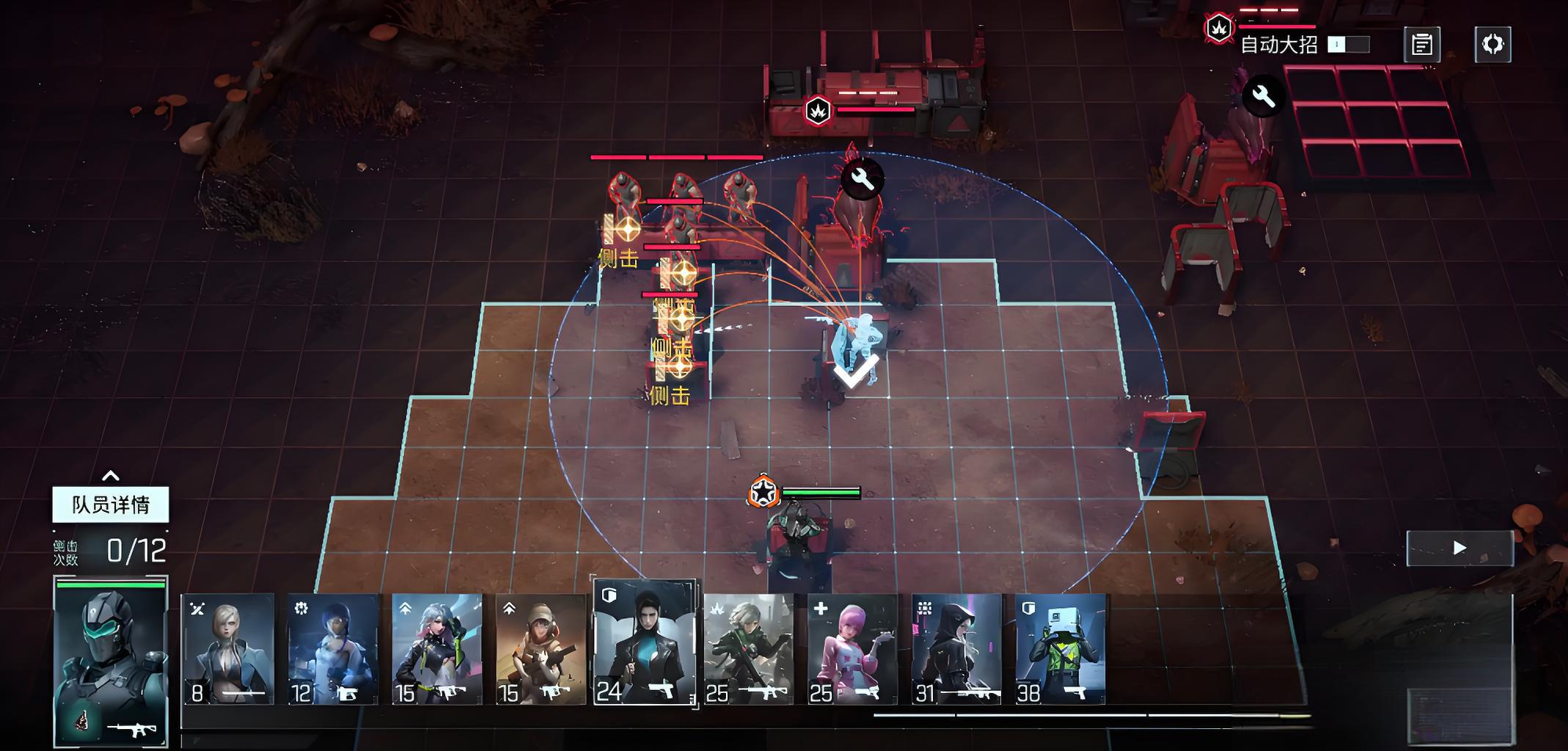 3、实现完美侧击需先创造机会,派重盾或突击型队员前排抗压推进,扩大安全范围后再折跃输出角色到敌人侧后方。