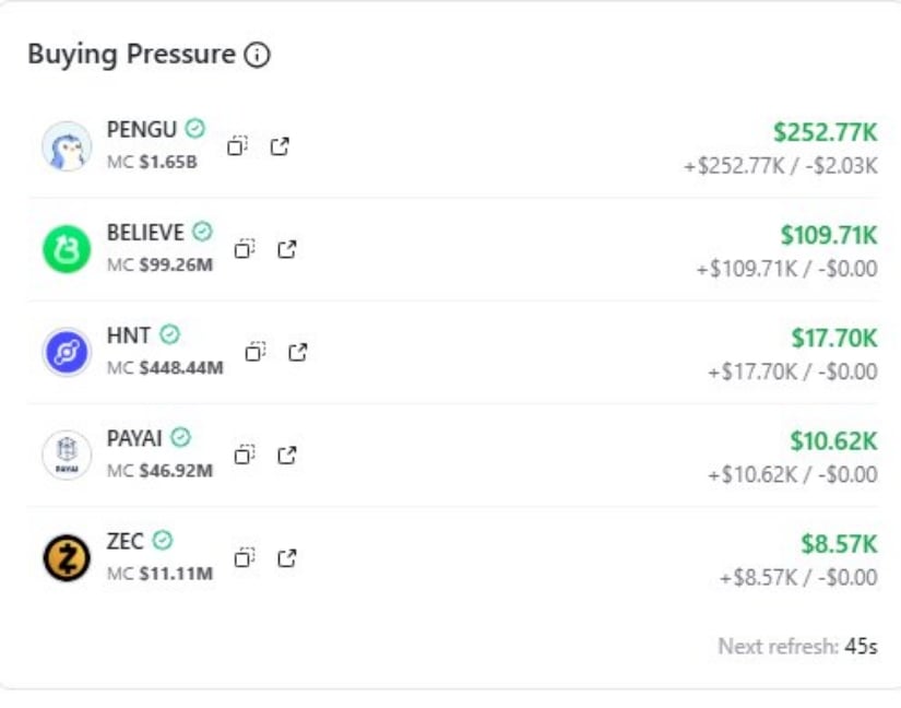 Stalkchain报告显示巨额链上积累活动,某钱包以每分钟1万美元的速度累计购入27.3万美元PENGU代币。如此持续的资金流入凸显大户信心增强,尤其该钱包历史买卖时点精准。