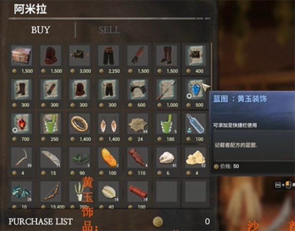然后点开阿米拉的设计图商店,在设计图中找到黄玉装饰道具。