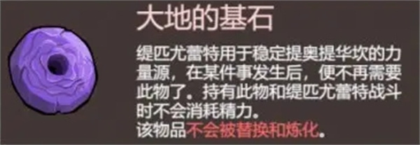 【大地的基石】 橘姜三委托完成后获得,对缇匹尤蕾秒杀道具