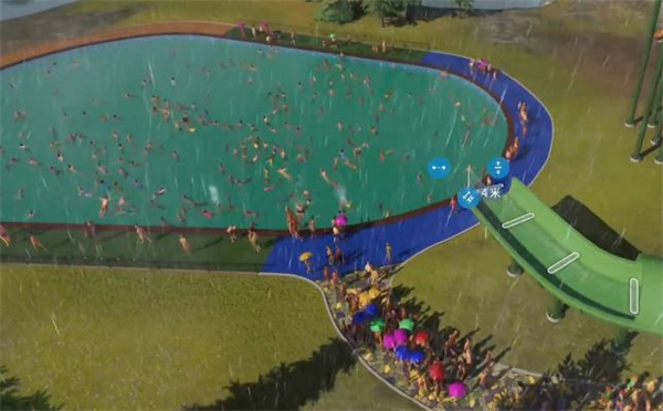 没有这些功能,游客可能不会长时间使用你的游泳池,甚至根本不会使用。 你可以在实用工具选项卡下找到过滤系统,不同的建筑在设施选项卡下。