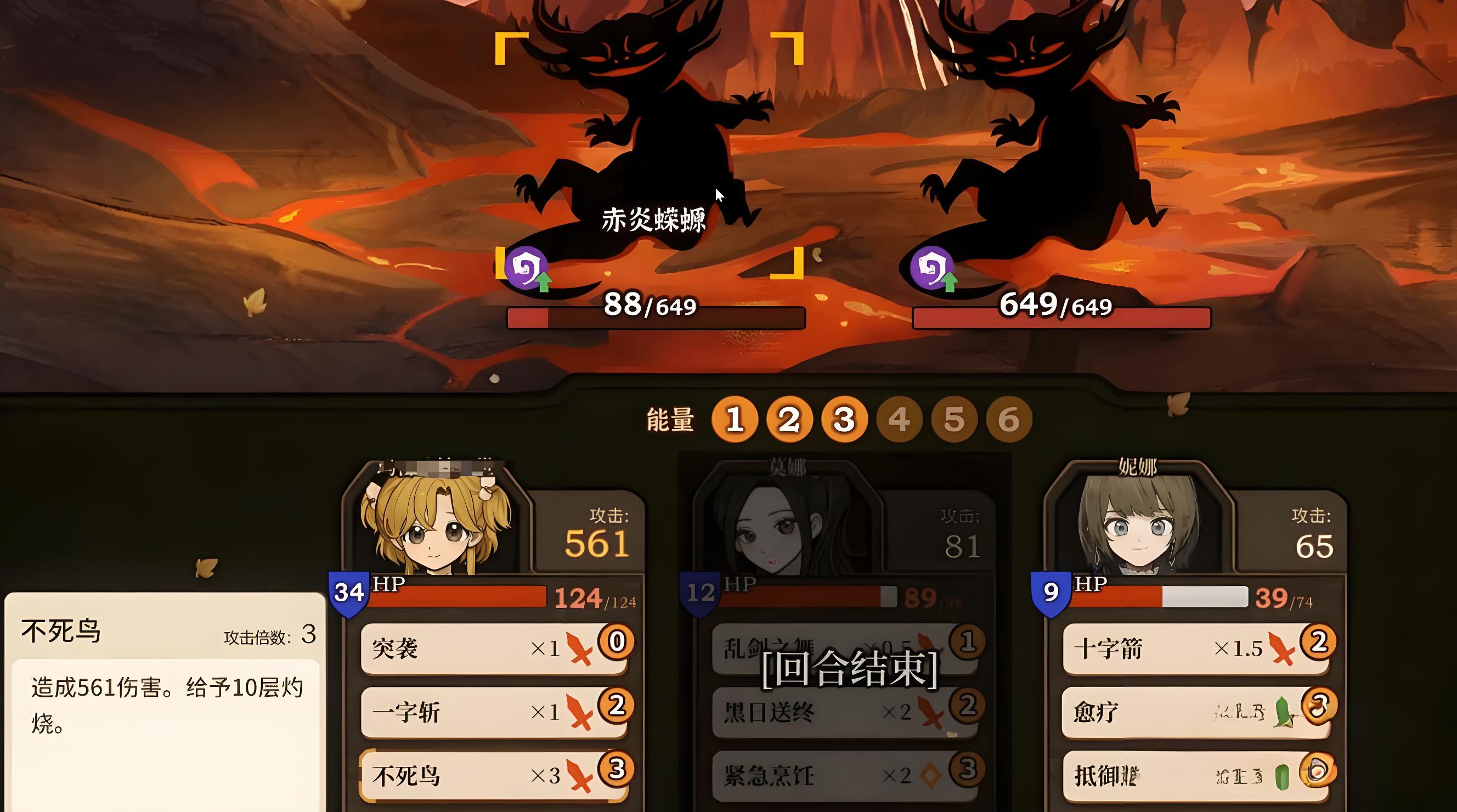 1、核心选强力突袭和疾风曲射,两招伤害高且能量需求低,适配每回合获2点能量机制,快速压低单体怪物血线或收弱小敌人。