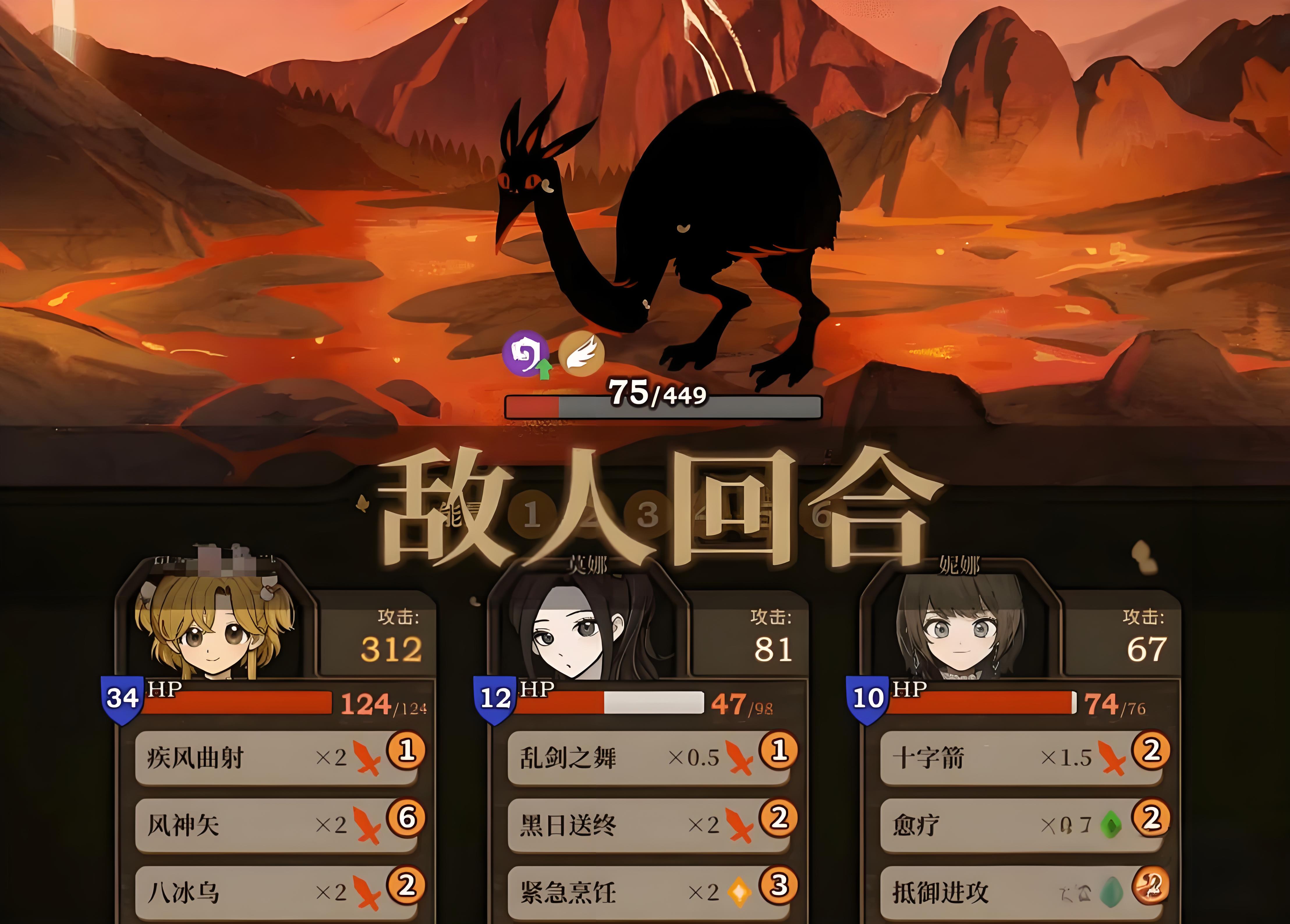 4、遇单体强力怪用八冰乌替换,单体输出附加两层易伤,帮助更快击败高难度单体目标,增强战斗场景适配性。