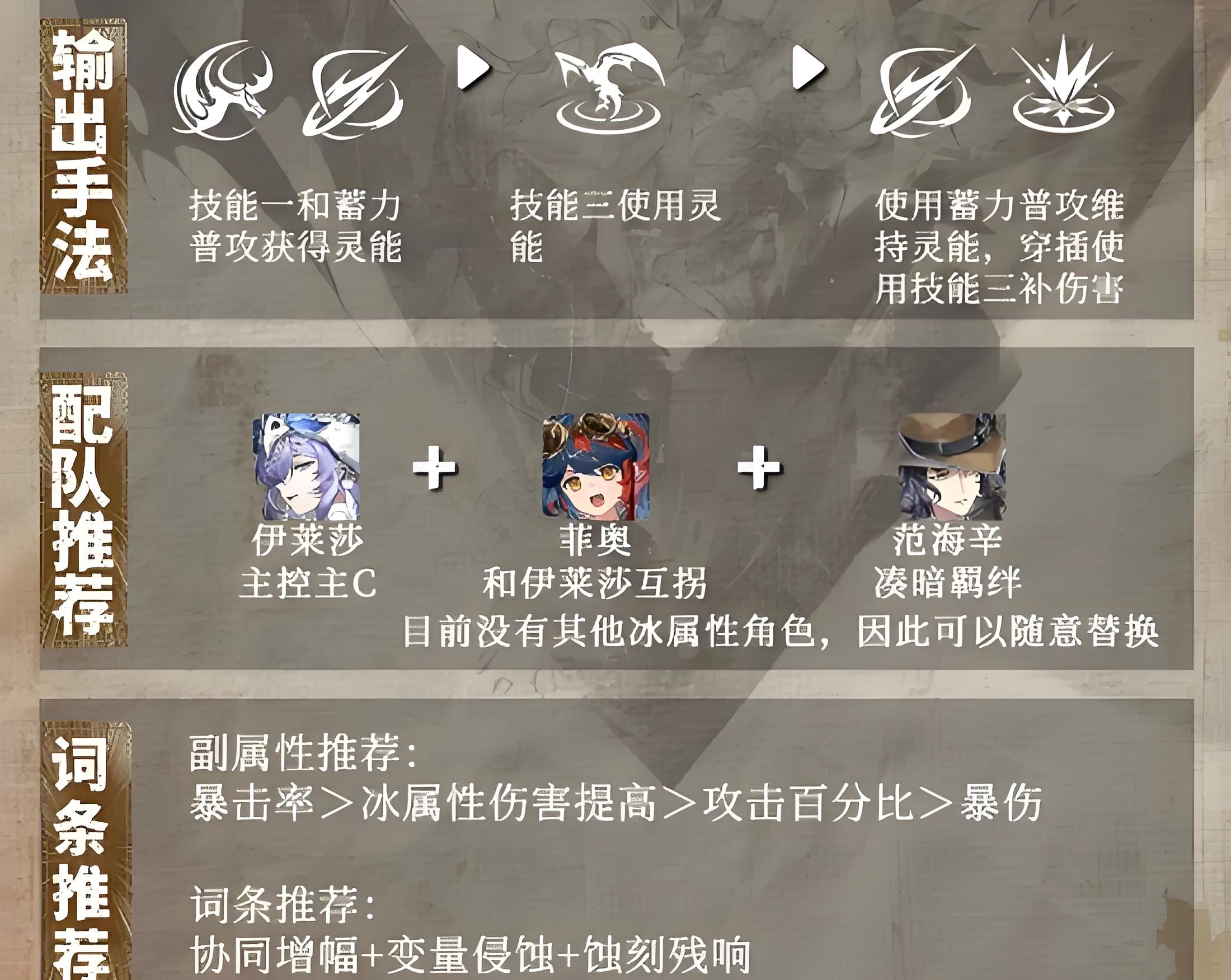2、装备副属性优先堆暴击率和冰属性伤害,暴击率建议超50%,其余补攻击百分比或爆伤,特效词条选变量侵蚀与协同增幅。