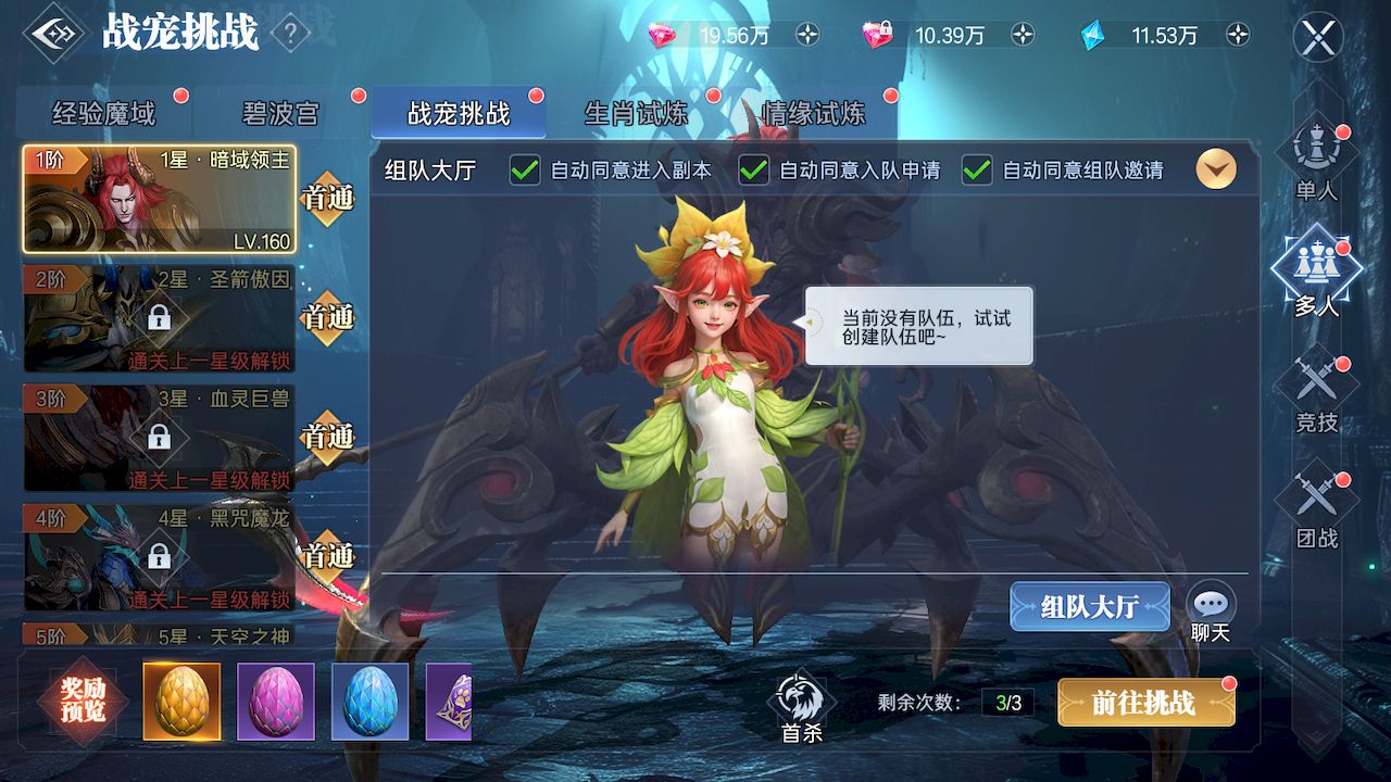 1、战宠挑战每日前两次挑战成功可获奖励,不同星级挑战设个人首通奖励,全服首通奖励同步开放领取。