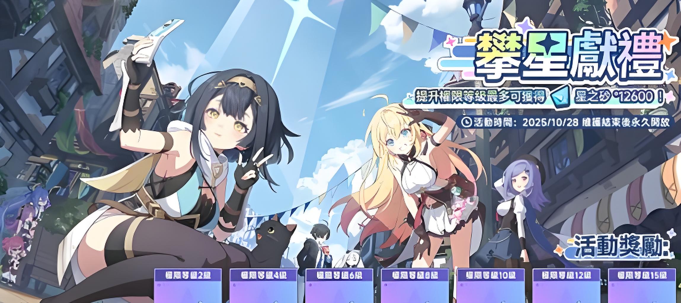 4、领取攀星献礼,提升权限等级至指定阶段即可领取星之砂,从二级到十五级共能获得一万二千六百星之砂,用于角色培养。
