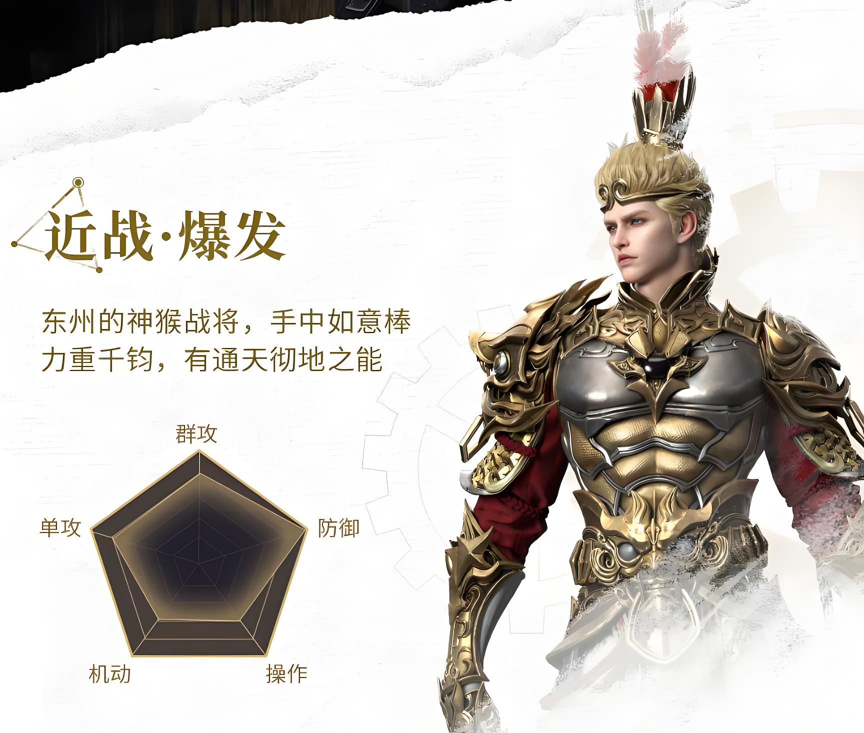 1、作为东州战将手持如意棒有通天彻地之能,定位近战爆发兼顾群攻与单攻能力,适合部署在前线承担主要输出任务。
