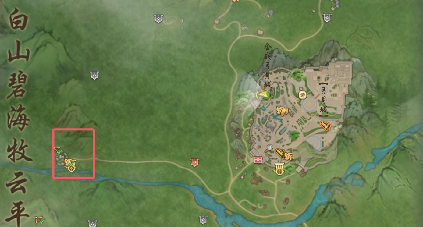 2、【米护】让我们去找【博鲁】借猎犬,【博鲁】 在地图左侧牧云平的云字。
