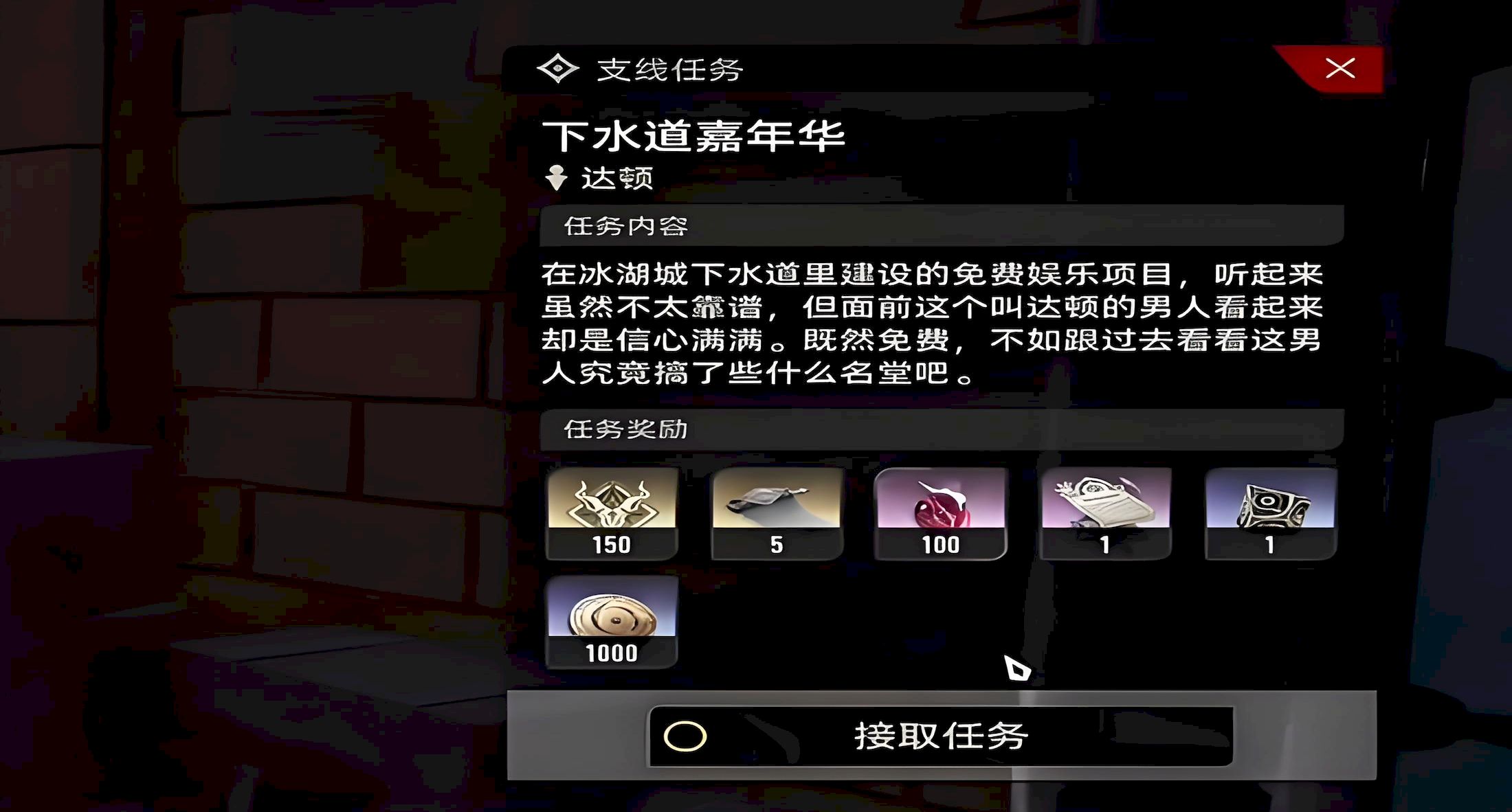 1、触发点在冰湖城东区地图标记处,前往后找下水道入口附近NPC,与其对话开启下水道嘉年华任务。