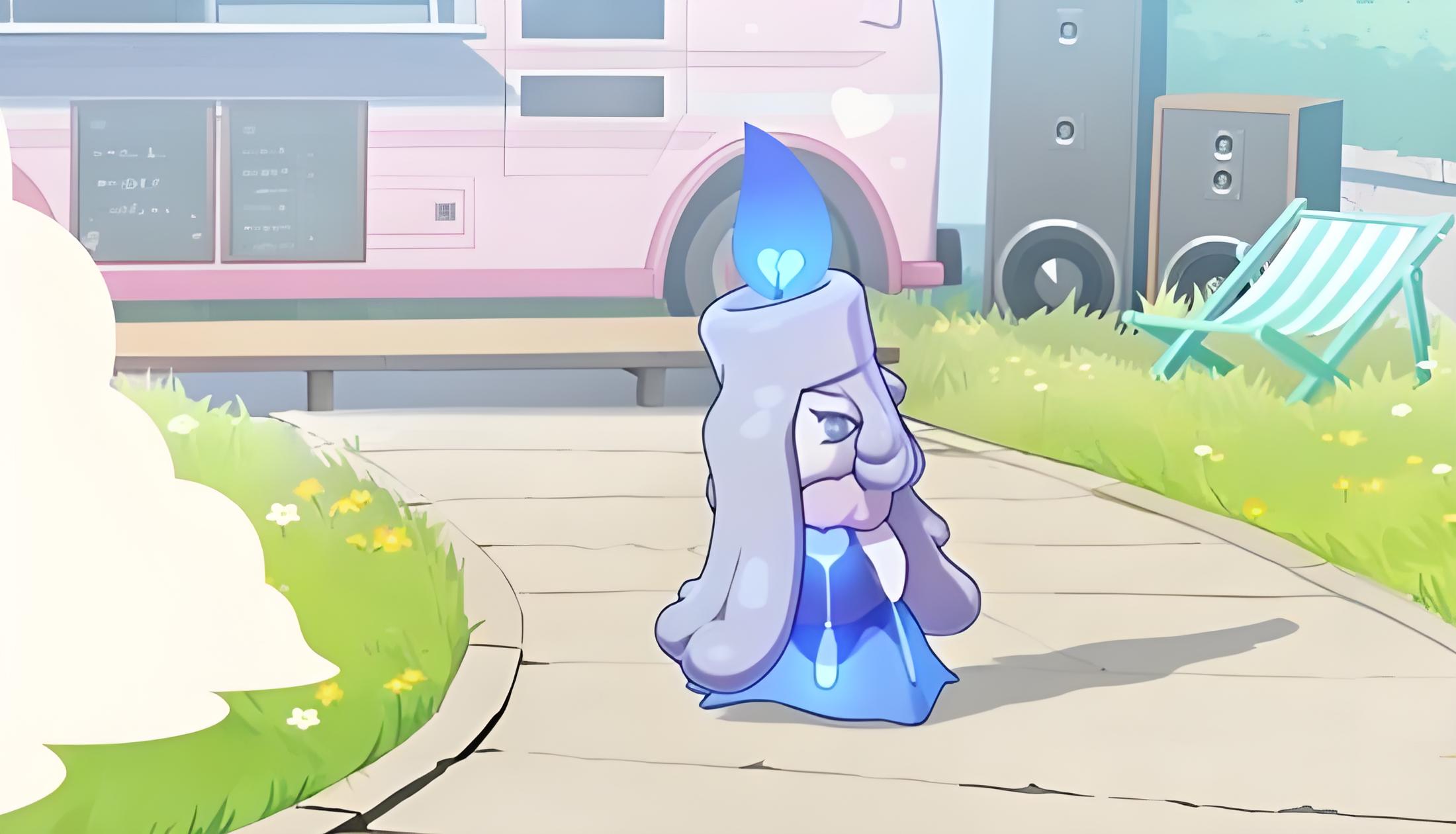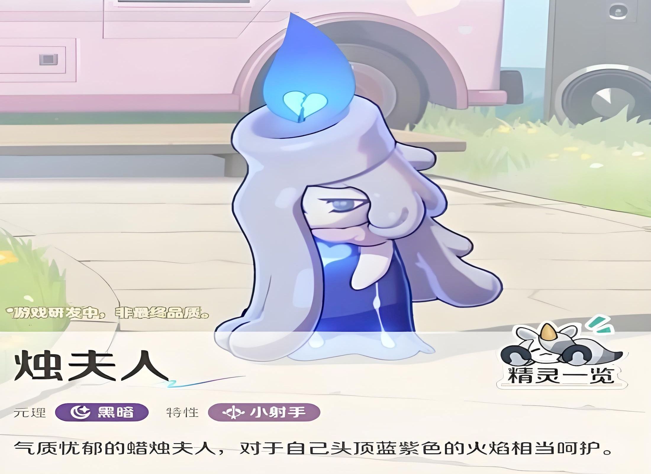 1、形象独特呈燃烧蜡烛形态,蜡质如长发垂落显柔美,头部蓝紫火焰呼应黑暗属性气质忧郁神秘。