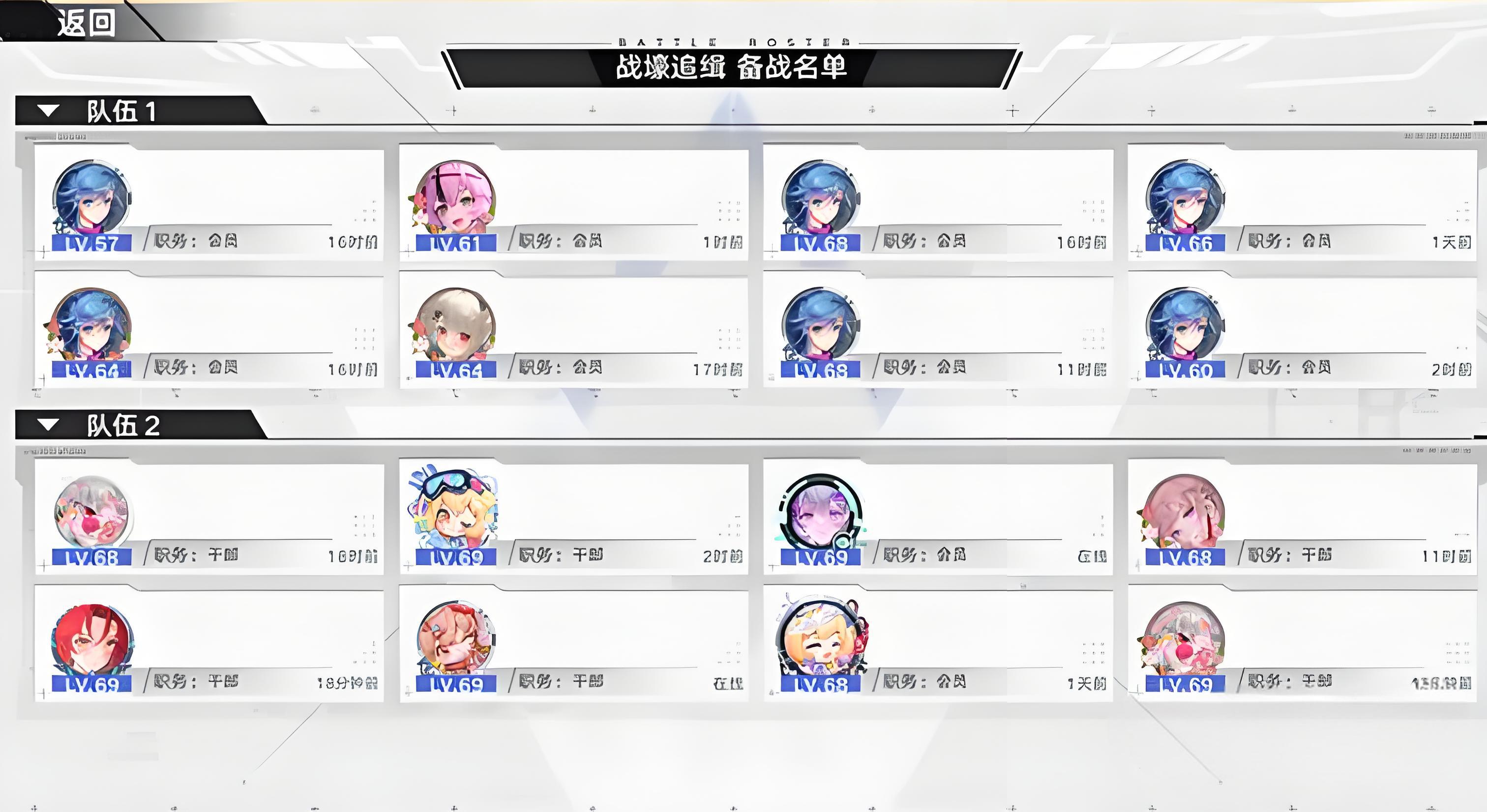 1、玩法分为战壕追缉和围猎行动两大战场,战壕追缉每轮选8位成员8v8激战,每场成员不重复共需40位精英参与。