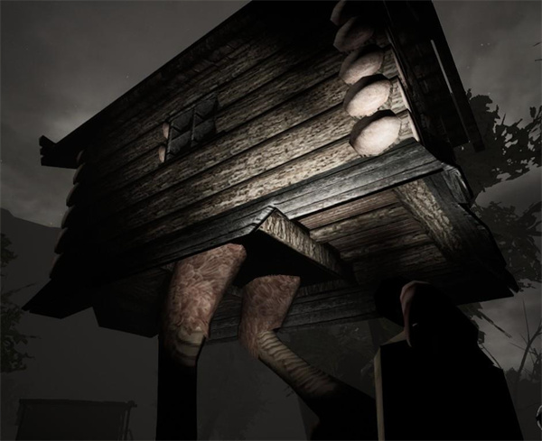 长着鸡脚的小屋,不让你进去。不过你要是动作够快,趁它转身坐下的一瞬间跳进去,就能在桌上发现一些抗辐射药。