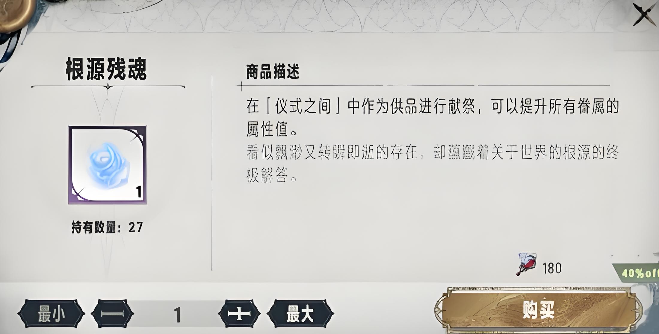 2、兑换根源残魂材料,其能提升角色基础属性,补足机制优秀但初始属性低角色的短板,用代币直接购买,提前储备助力角色快速成型。