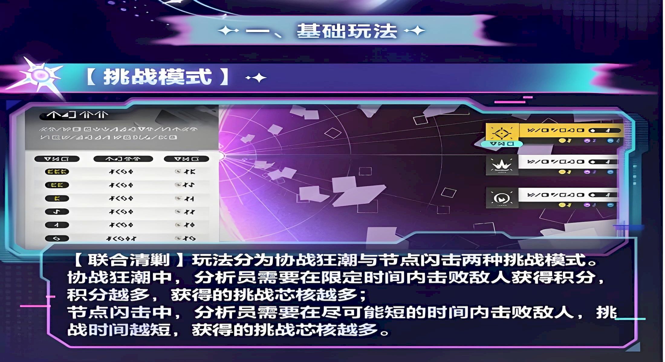 3、协战狂潮模式要求限定时间内击败敌人获取积分,积分高低直接决定挑战芯核获取数量,考验战斗效率与持续输出能力。