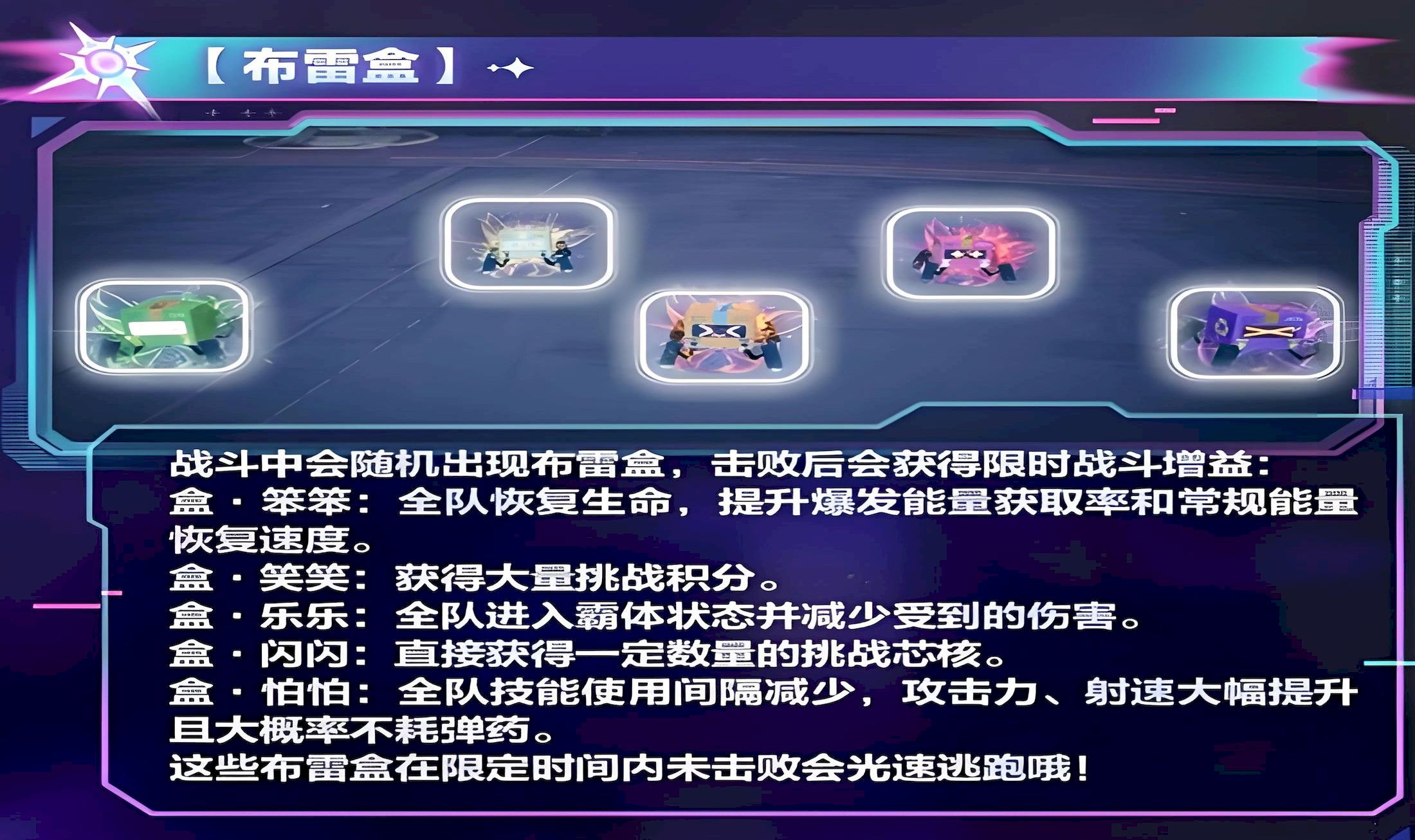 5、战斗中随机刷新多种布雷盒,击败可获生命恢复积分加成等限时增益,未及时击败会快速逃跑,合理利用可提升挑战优势。