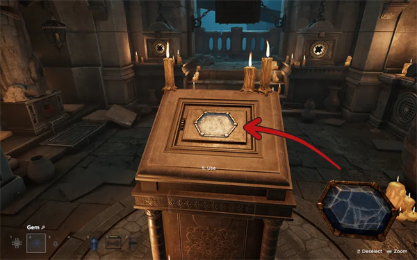 将宝石放在房间中央讲台的孔内。