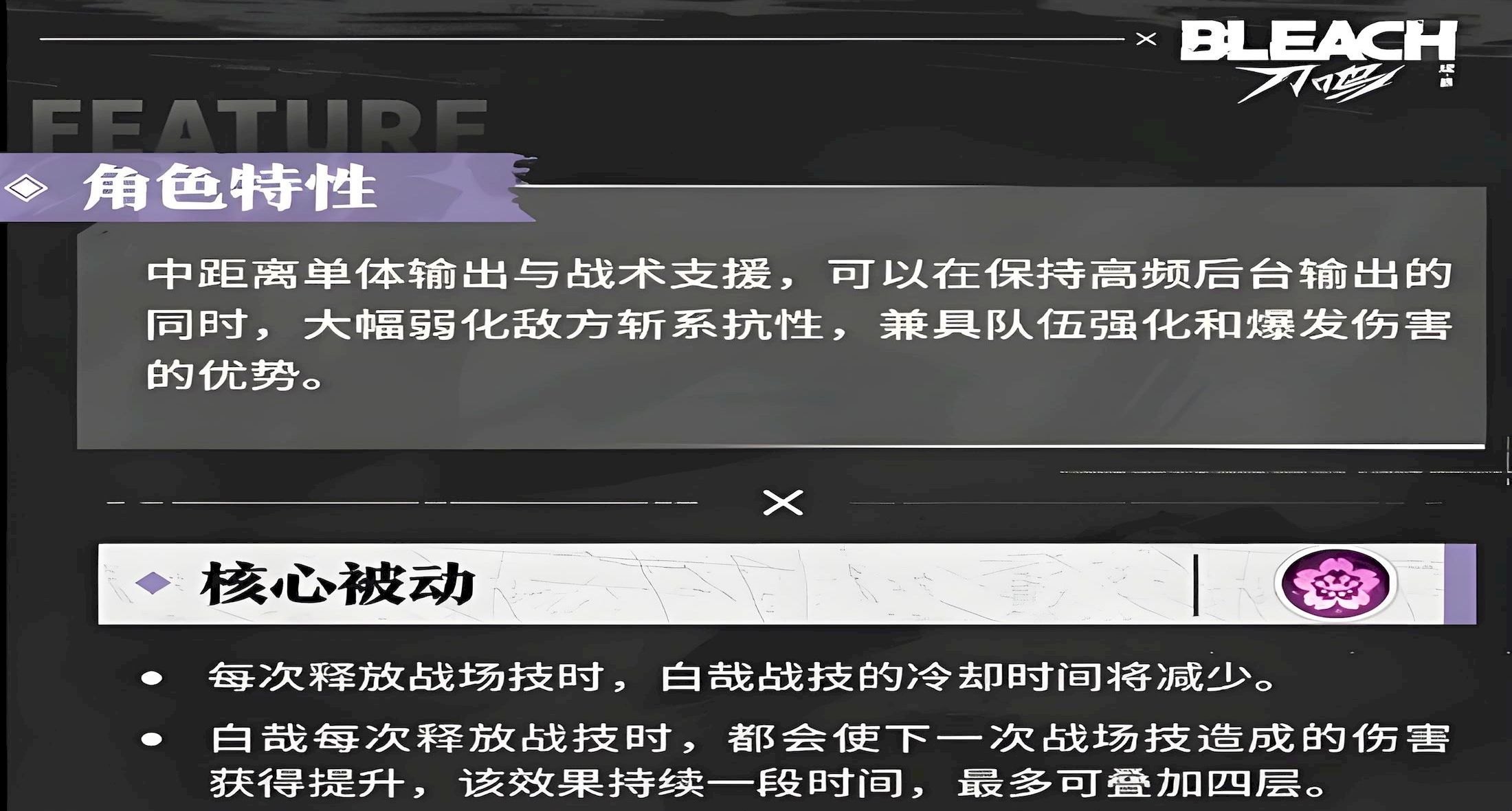 2、被动协同白帝剑,退居后台后队友斩系普攻或技能攻击,有概率触发额外斩击并维持印记层数。