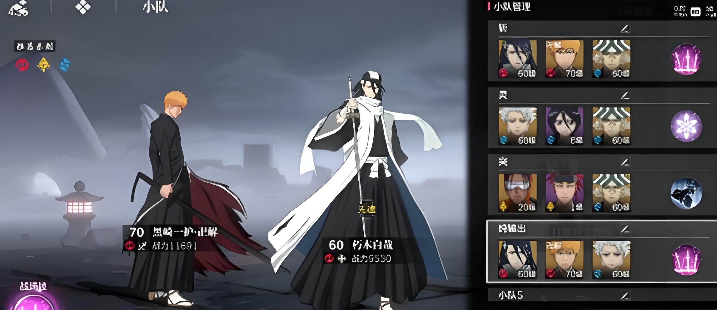 3、斩系输出队搭配黑崎一护阿散井恋次,白哉先手施印增伤,一护开必杀爆发,恋次高频斩击清场。