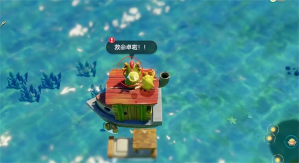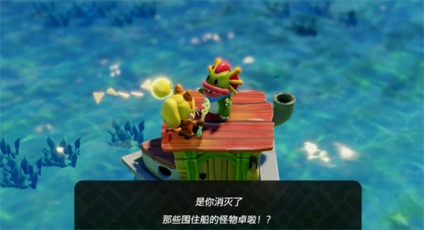 2、在海域前面就能触发剧情,看见一条被小怪围攻的船;